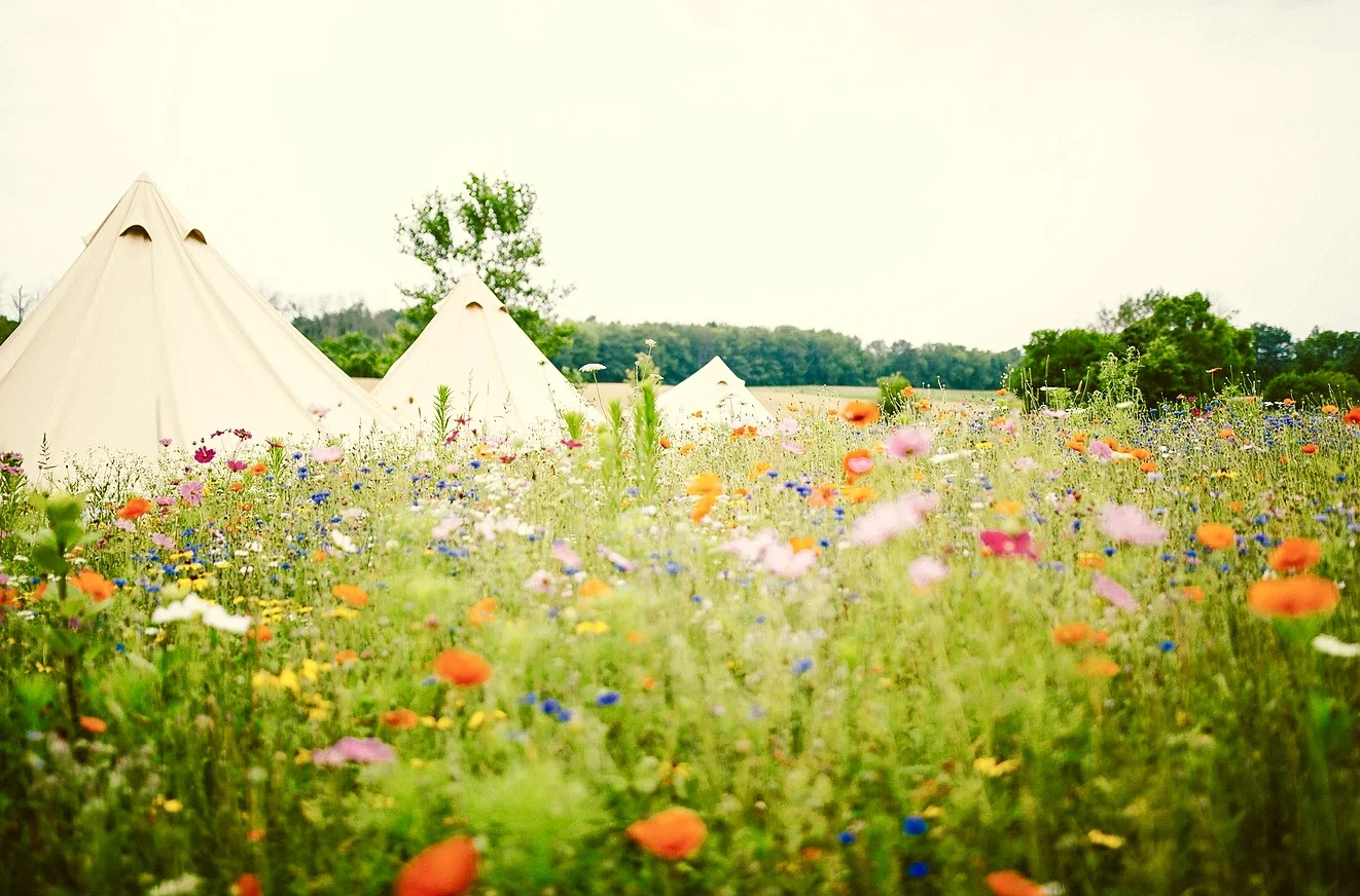 If you are incredibly excited to attend The Get Together, but feel your floor resting, sleeping bag days are over, we have a limited number of glamping options available! Our Canvas tents are artfully situated throughout the property and equipped with comfortable beds and bedding. You must book the full tent. Please reach out to inquire about pricing.